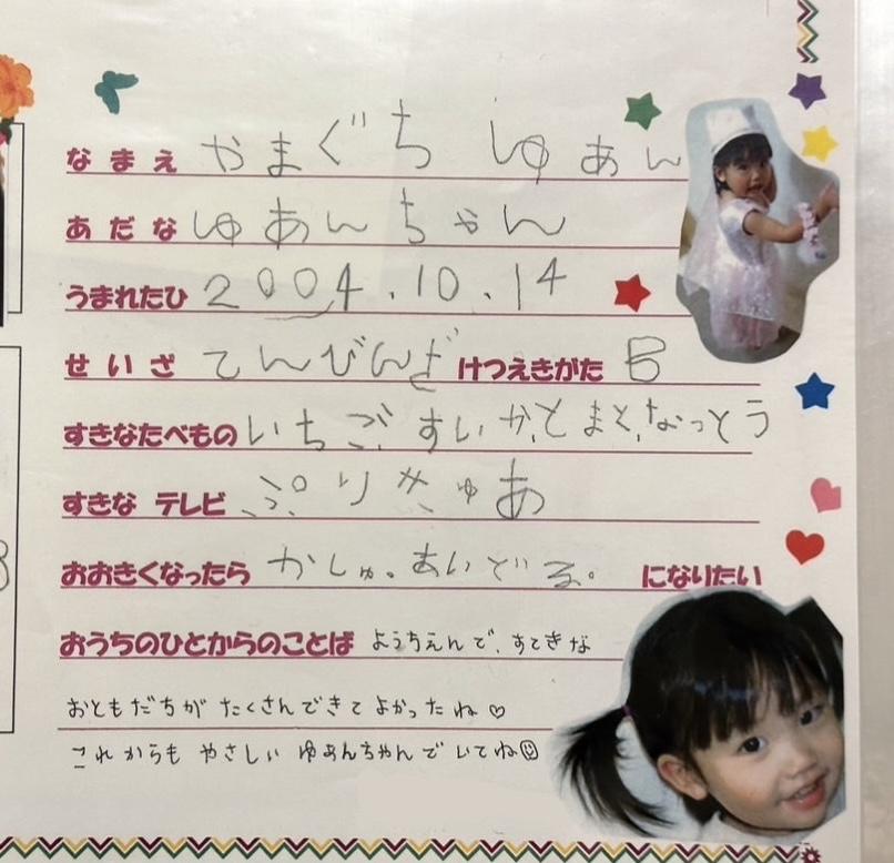 私は小ちゃい頃すぎて正直覚えていないのですが…。小ちゃい頃のゆあんは大きくなったらアイドルになりたかったみたい😶