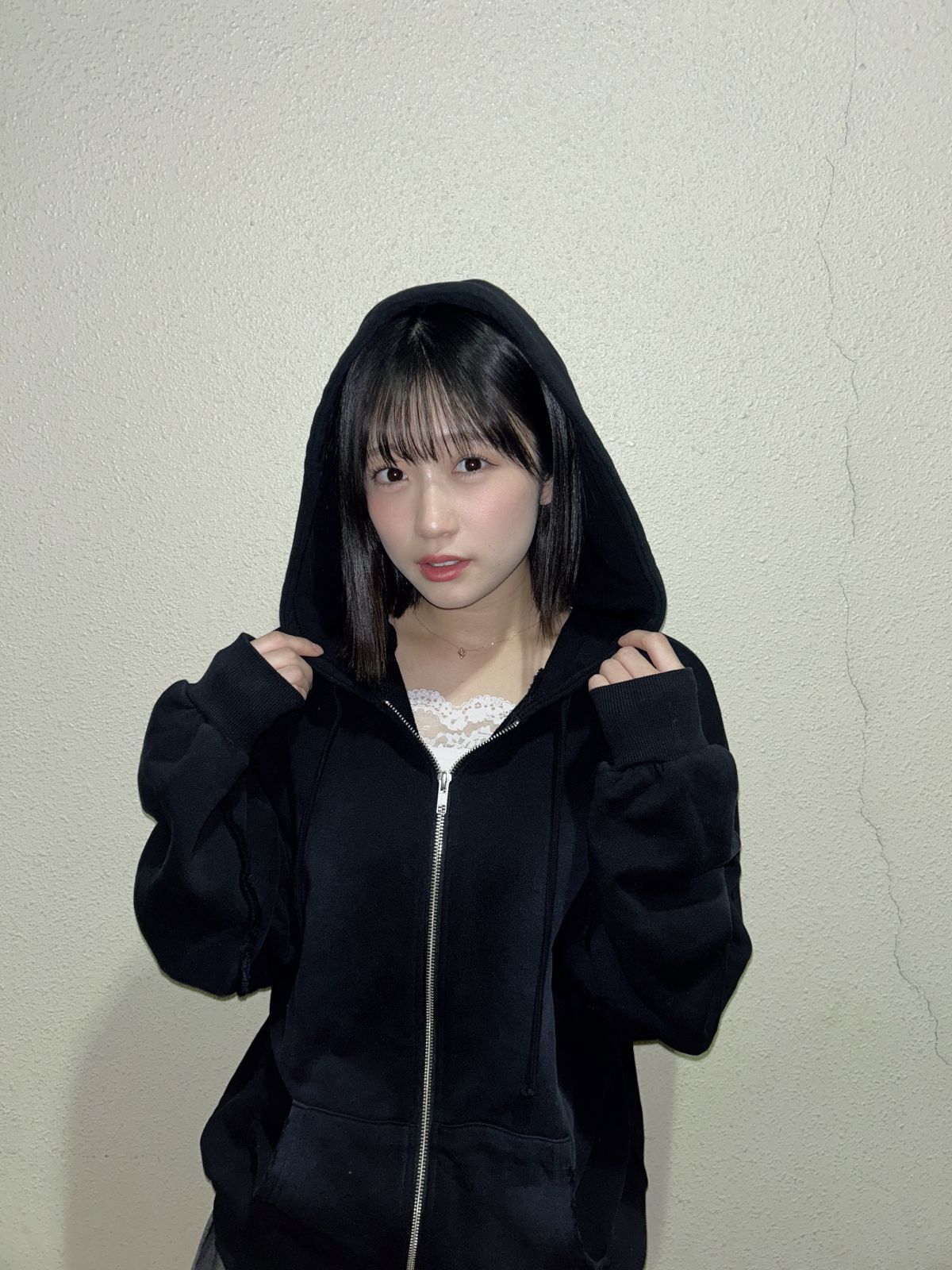 パーカー中にフリルの魅せるインナーを着たら