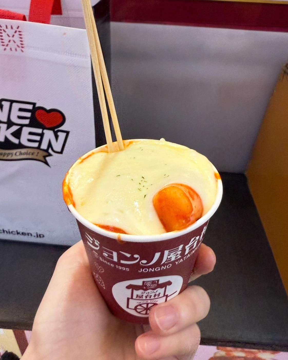 チーズトッポギを食べたのーおいしすぎる( ; ; )