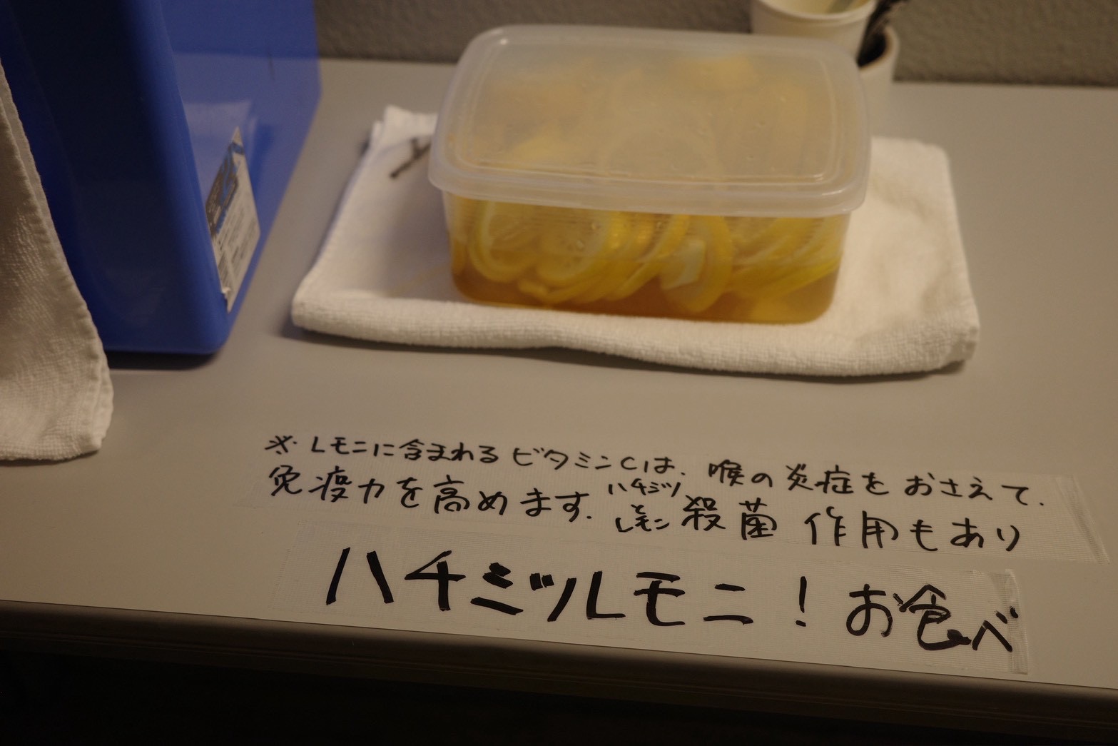 ツアーでいつも用意してくださるハチミツレモン🍯🍋ありがたい…!レモ”ニ”になってるのがかわいい