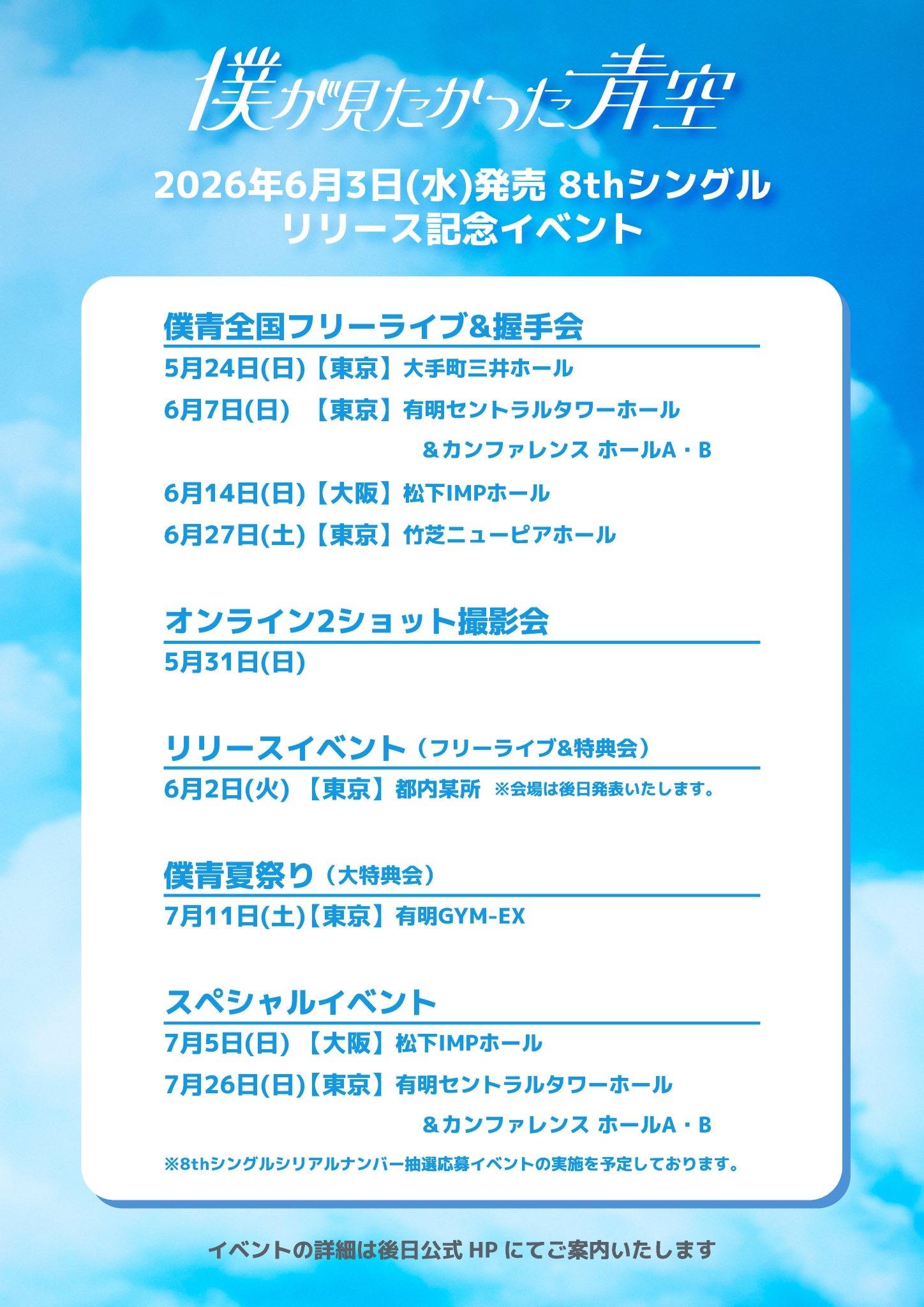 2026年6月3日(水)発売 僕が見たかった青空8thシングル リリース記念イベントの開催が決定いたしました!