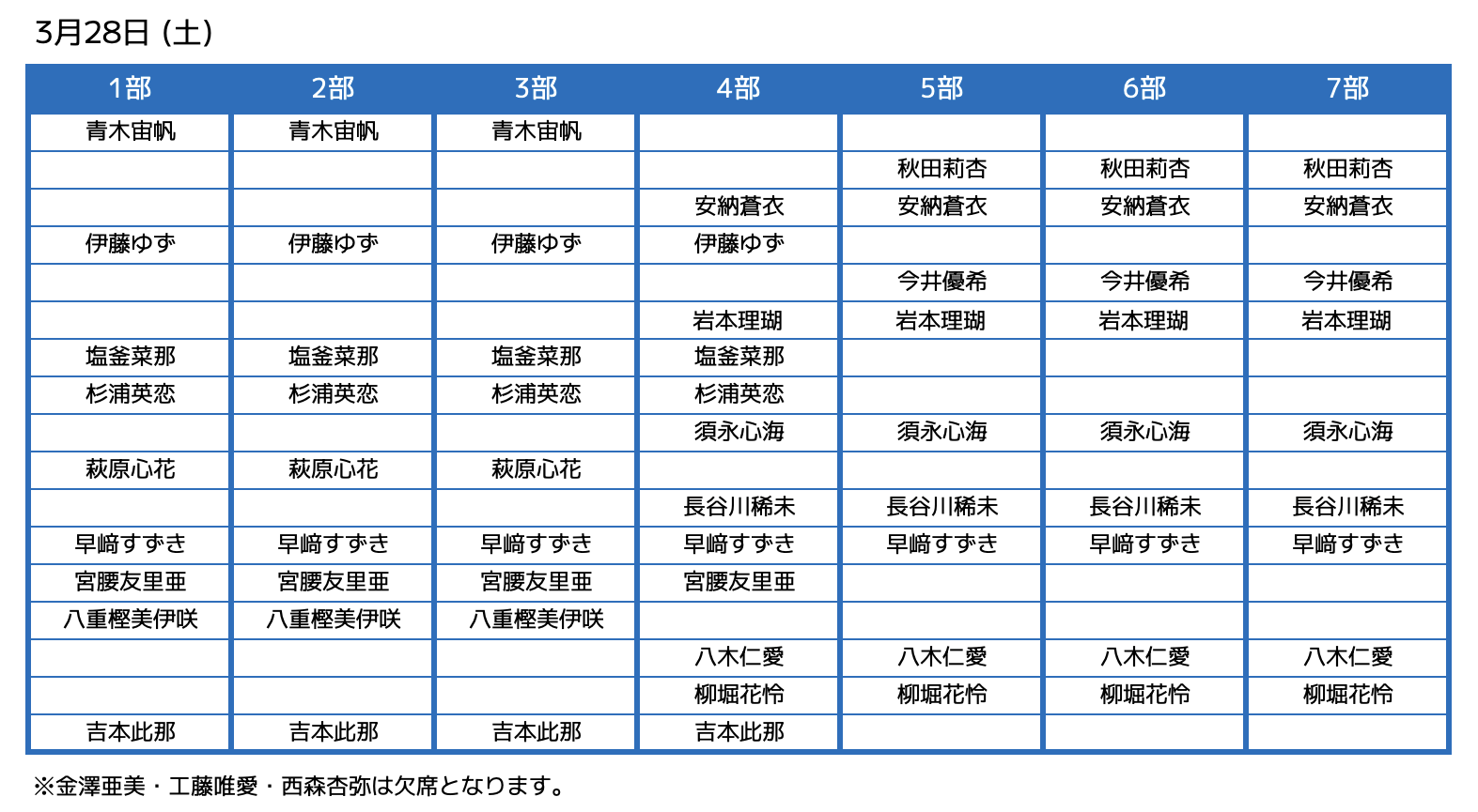 ※ご購入時にご希望の部・メンバーをお選びいただけますが、同部で開催される他メンバーの商品は一緒にご購入をいただくことは出来ません。
